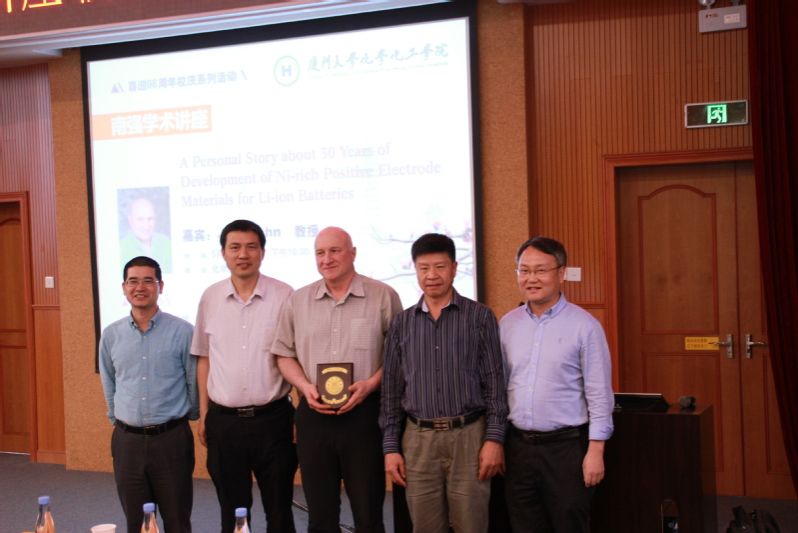 On May 4,During the 98th anniversary of the university, Professor Jeff Dahn, the world-famous lithium battery expert, chief scientist of Tesla, the world-famous electric vehicle company, and academician of the Royal Canadian Academy of Sciences, visited our school and gave a wonderful "NanQiang Academic Lecture" at the highest level of Xiamen University to all the teachers and students. A Personal Story about 30 Years of Development of Ni-rich Electrode Materials for Li-ion Batteries. The lecture was hosted by Professor Yang Yong,Academician Sun Shigang awarded the "Nanqiang Academic Lecture" honorary plaque to Academician Dahn.