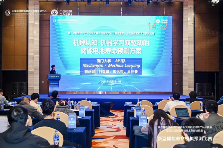 2024年12月3日- 4日,由工业和信息化部产业发展促进中心主办,中国汽车工程研究院股份有限公司承办的第二届能源电子产业创新大赛暨第三届先进储能技术创新挑战赛新型储能产品赛道“新型储能寿命模拟预测技术专题赛”在重庆市成功举办,该大赛赛道受华为技术有限公司和宁德时代新能源科技有限公司支持。本次大赛吸引了多家国内科研院所、高校、企业、事业单位的科研、技术、试验人员以及学生报名参赛。参赛单位包括清华大学、北京大学、浙江大学、同济大学、厦门大学、电子科技大学等知名高校,比亚迪储能、惠州亿纬锂能股份有限公司、国网综合能源服务集团等知名企业,以及中国北方车辆研究所、贵州电网电力科学研究院等科研院所的博士生及其研发人员参加。厦门大学化学化工学院杨勇教授课题组“M2L队” (Mechanism × Machine Learning)顺利晋级线下决赛预测竞赛和作品答辩,最终脱颖而出斩获二等奖的佳绩。据悉,该分赛道本次评选一等奖1项、二等奖2项、三等奖3项、优秀奖4项,通过初赛筛选晋级线下决赛即获入围奖。这是厦门大学学子首次参加该比赛,并首次在进入决赛中拿到二等奖奖项。