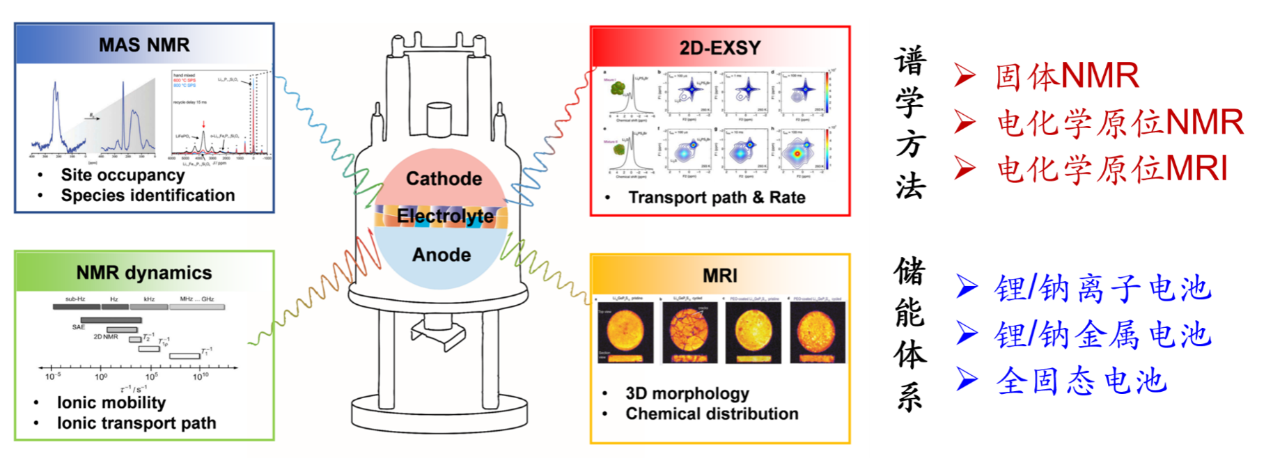 发展多种原位谱学表征方法(原位固体核磁共振技术/核磁共振成像技术、多种原位X射线衍射技术等)